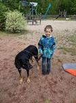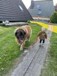 Vorne: ❤️ 60 kg Großer Schweizer Sennenhund mit 20 kg Mädchen / 6 Jahre.